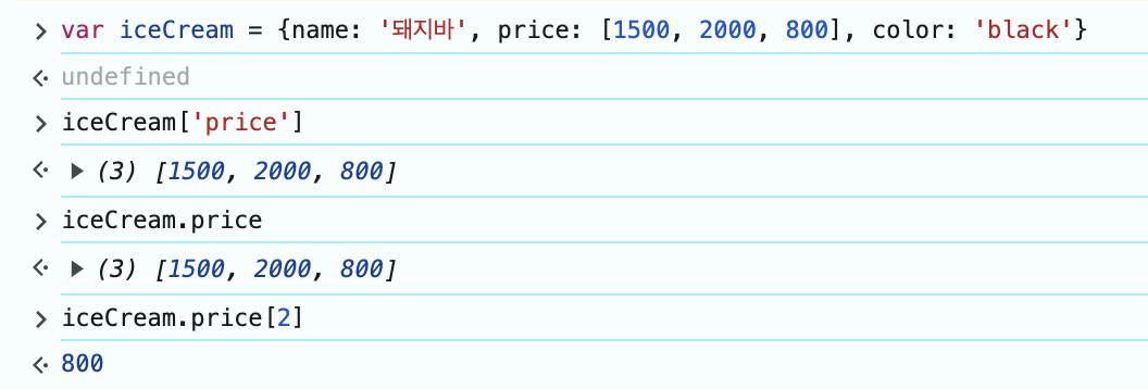 object, array 넣기도 가능