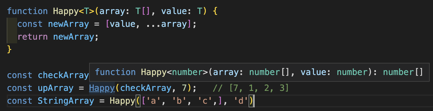 - 제너릭 타입 정의: 함수 안에서만 사용할 수 있는 타입